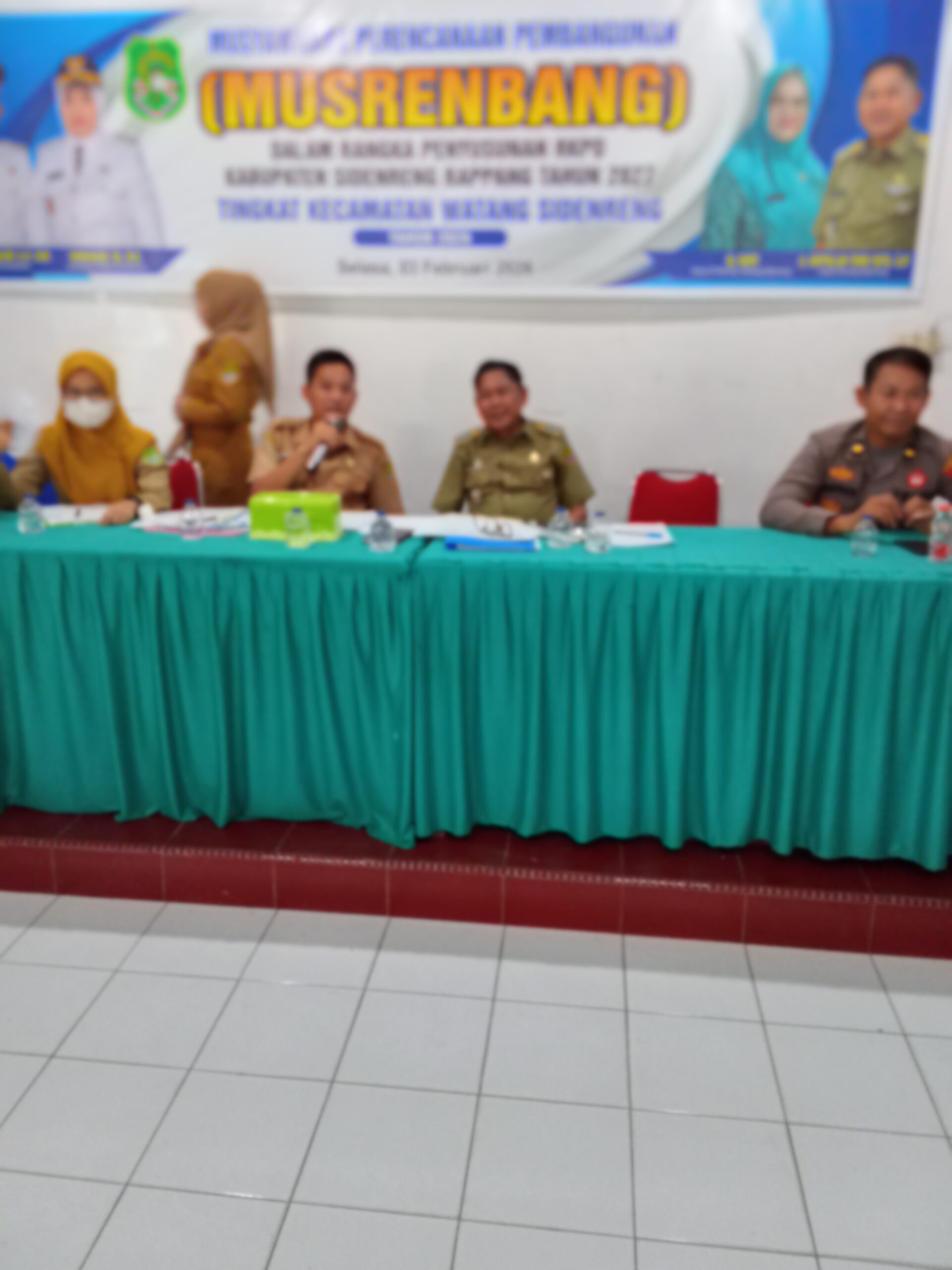 SIDRAP — Musyawarah Perencanaan Pembangunan (Musrenbang) tingkat Kecamatan Watang Sidenreng digelar di Aula Kantor Camat Watang Sidenreng, Selasa, 3 Februari 2026. Kegiatan ini dibuka langsung oleh Camat Watang Sidenreng, Andi Saipullah Tenri Tatta, S.IP.