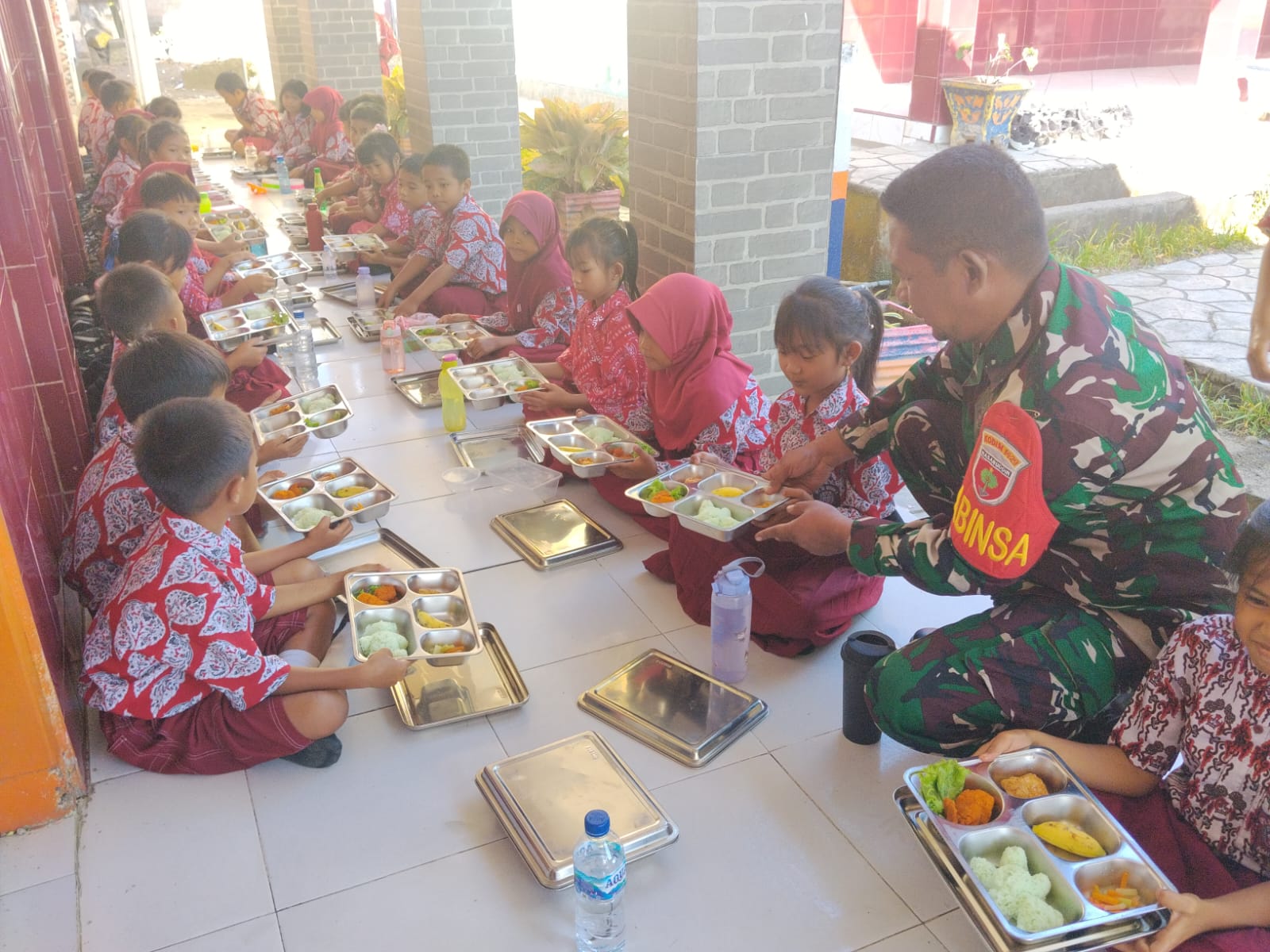 SIDRAP : Dalam upaya mendukung program pemerintah dalam pemenuhan gizi anak dan pencegahan stunting di usia dini, Babinsa dari jajaran Ramil Kodim 1420/Sidrap melaksanakan pendampingan pendistribusian makan bergizi gratis pada Rabu (15/04/2026).