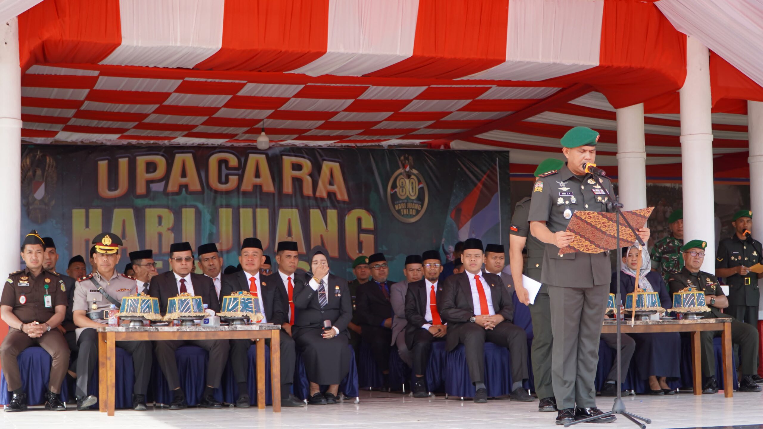 SIDRAP : 15 DESEMBER 2025 – Letkol Inf Andi Zulhakim Asdar S.H.I., M.H.I selaku Dandim 1420/Sidrap memimpin pelaksanaan Upacara Hari Juang TNI AD tahun 2025 yang berlangsung di Lapangan Upacara SKPD Jl. Harapan Baru, Kel. Batulappa, Kec. Watang Pulu, Kabupaten Sidrap, Senin (15/12/2025). Peringatan tahunan ini menandai hari lahir TNI AD pada 15 Desember 1945.