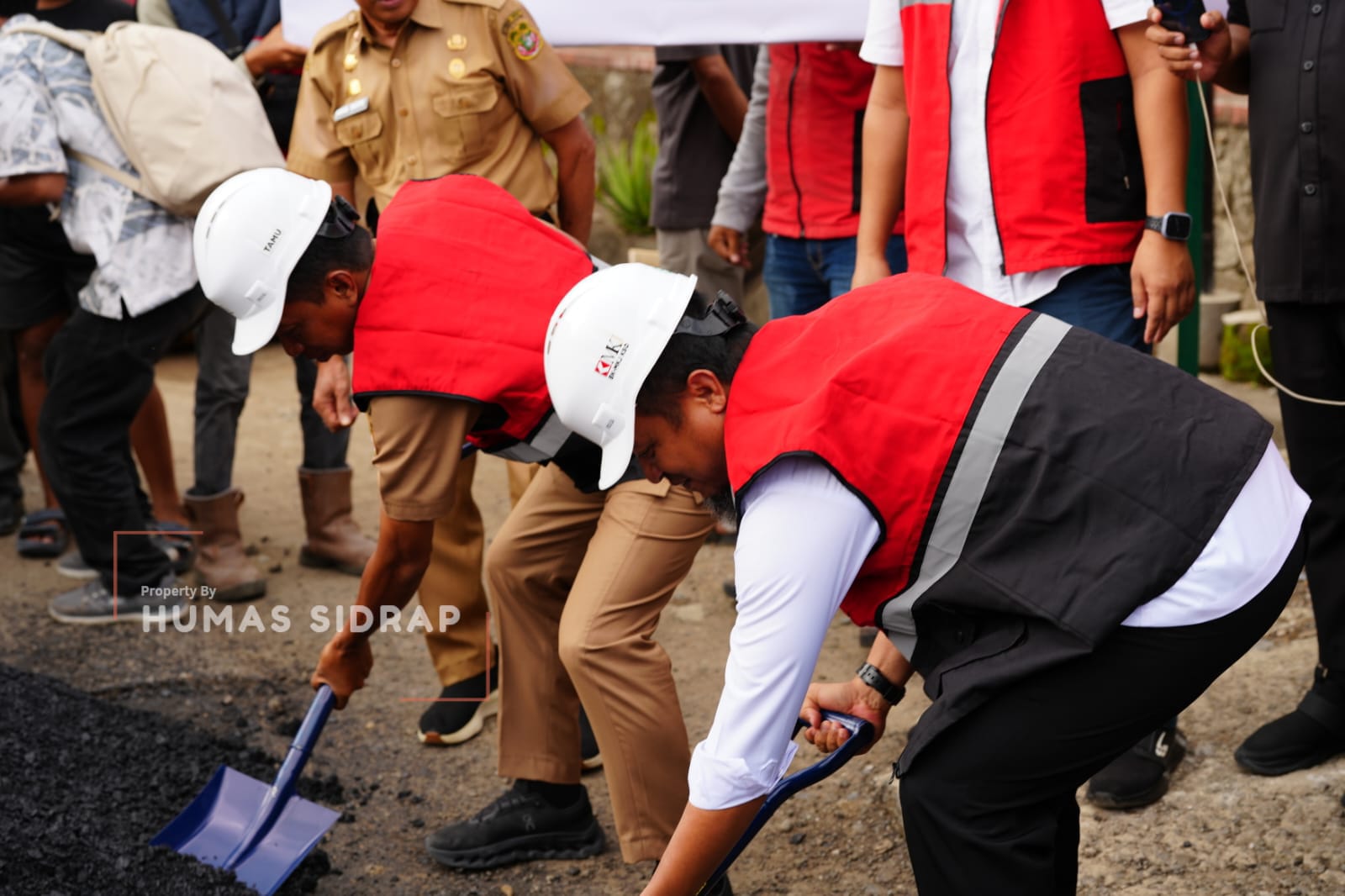 Tampak pula para asisten, staf ahli, Kepala OPD, camat, kepala desa dan lurah, tokoh masyarakat, tokoh agama, serta warga sekitar.