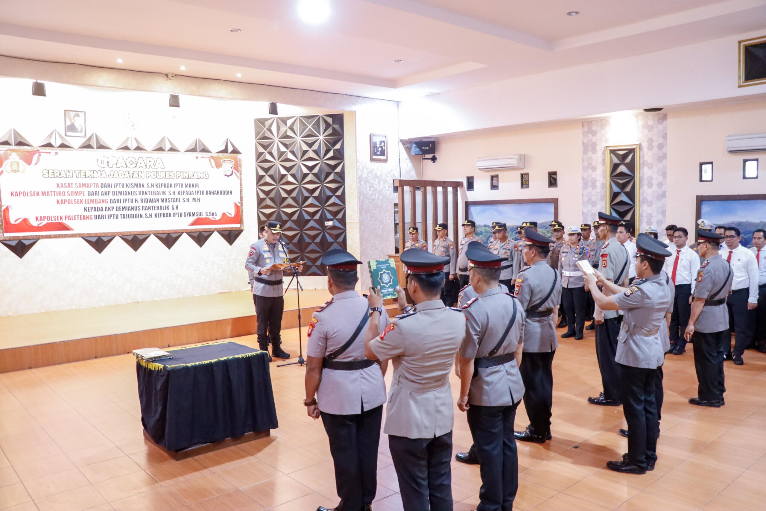 Beberapa jabatan yang diserahterimakan dalam kegiatan tersebut antara lain Kasat Samapta dari IPTU Kisman, S.H. kepada IPTU Munir, jabatan Kapolsek Mattirosompe dari AKP Demianus Rantebalik, S.H kepada IPTU Baharuddin, jabatan Kapolsek Lembang dari IPTU H. Ridwan Mustari, S.H., M.H. kepada AKP Demianus Rante Balik, S.H., serta jabatan Kapolsek Paleteang dari IPTU Tajuddin, S.H. kepada IPTU Syamsul, S.Sos. Pergeseran ini merupakan bagian dari dinamika organisasi dalam meningkatkan efektivitas pelaksanaan tugas kepolisian.