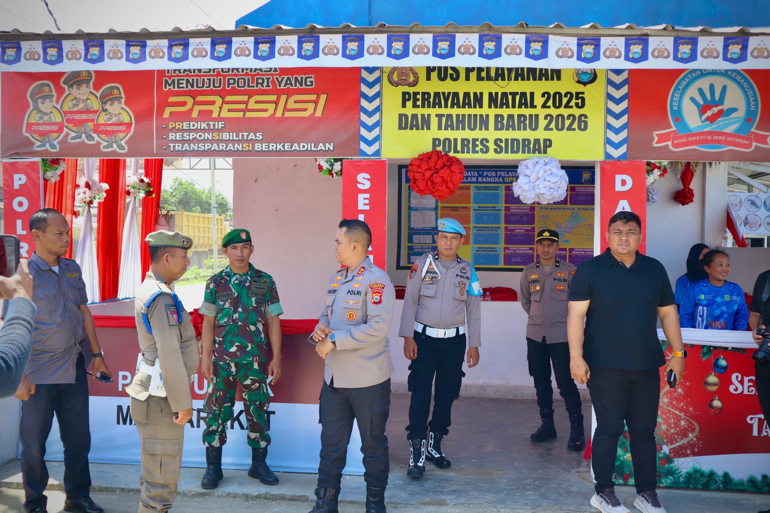 SIDRAP : Dalam rangka memastikan pelaksanaan Ibadah Natal 2025 berjalan aman dan kondusif, Kapolres Sidrap Akbp Fantry Taherong melakukan pengecekan langsung baik terhadap personel pengamanan maupun lokasi pelaksanaan ibadah di rumah-rumah ibadah di Wilayah Kabupaten Sidrap, Kamis (25/12/25) siang